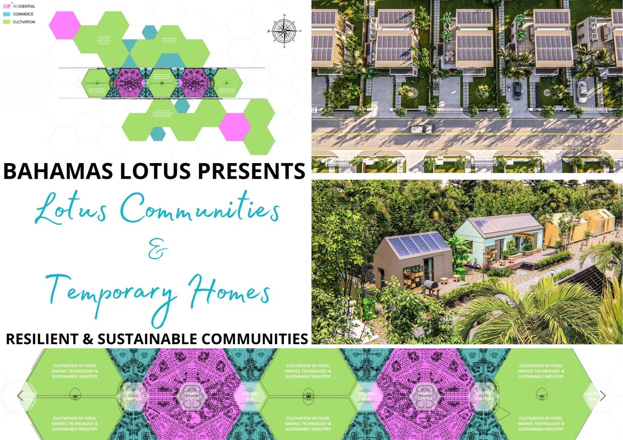 Bahamas Lotus promotes sustainable living through sustainable communities known as “Lotus Communities” by educating, designing, and building. These communities intend to focus on environmental and economic sustainability, social equity, food security (agriculture and our marine ecosystems) with the ability for sustainable trade and export (local to international), clean water systems and cycles, clean, renewable energy (production, storage, and distribution), disaster relief housing (sustainable temporary homes designed for hurricane recovery), affordable, sustainable housing (low-income cat 5 hurricane rated homes).